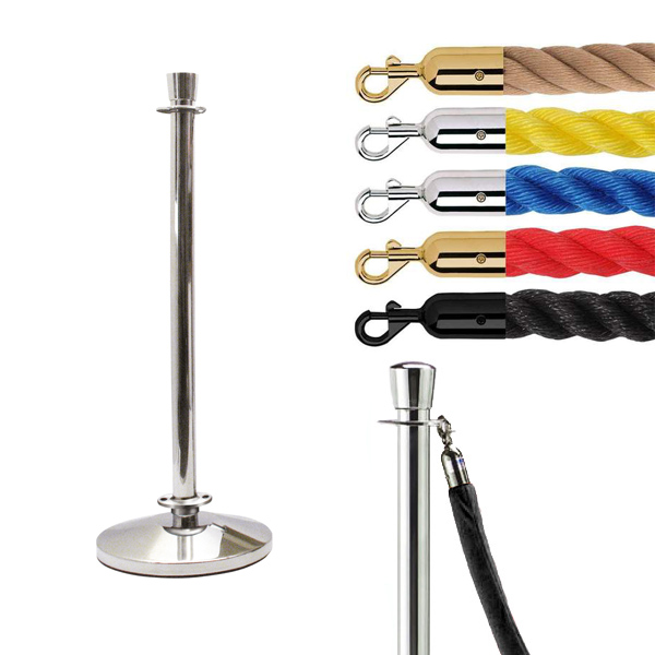 עמוד תור עם חבל שזור או קטיפתי הכולל בסיס כבד למניעת נפילה.
