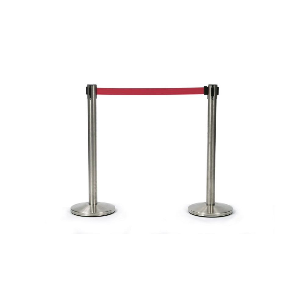 עמוד תור נייד עם בסיס כבד למניעת נפילה מגיע עם סרט מובנה נשלף.